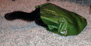 Apparently Sadie is unaware of the dangers of playing inside a plastic bag.